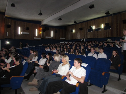 В фойе кинотеатра была организована работа интерактивных площадок, а в зале собрались комсомольцы прошлых лет и молодёжь