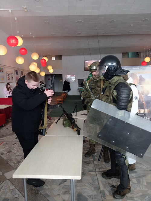 До начала премьеры в фойе кинотеатра «Мир» прошла выставка оружия, подготовленная Мозырским пограничным отрядом.